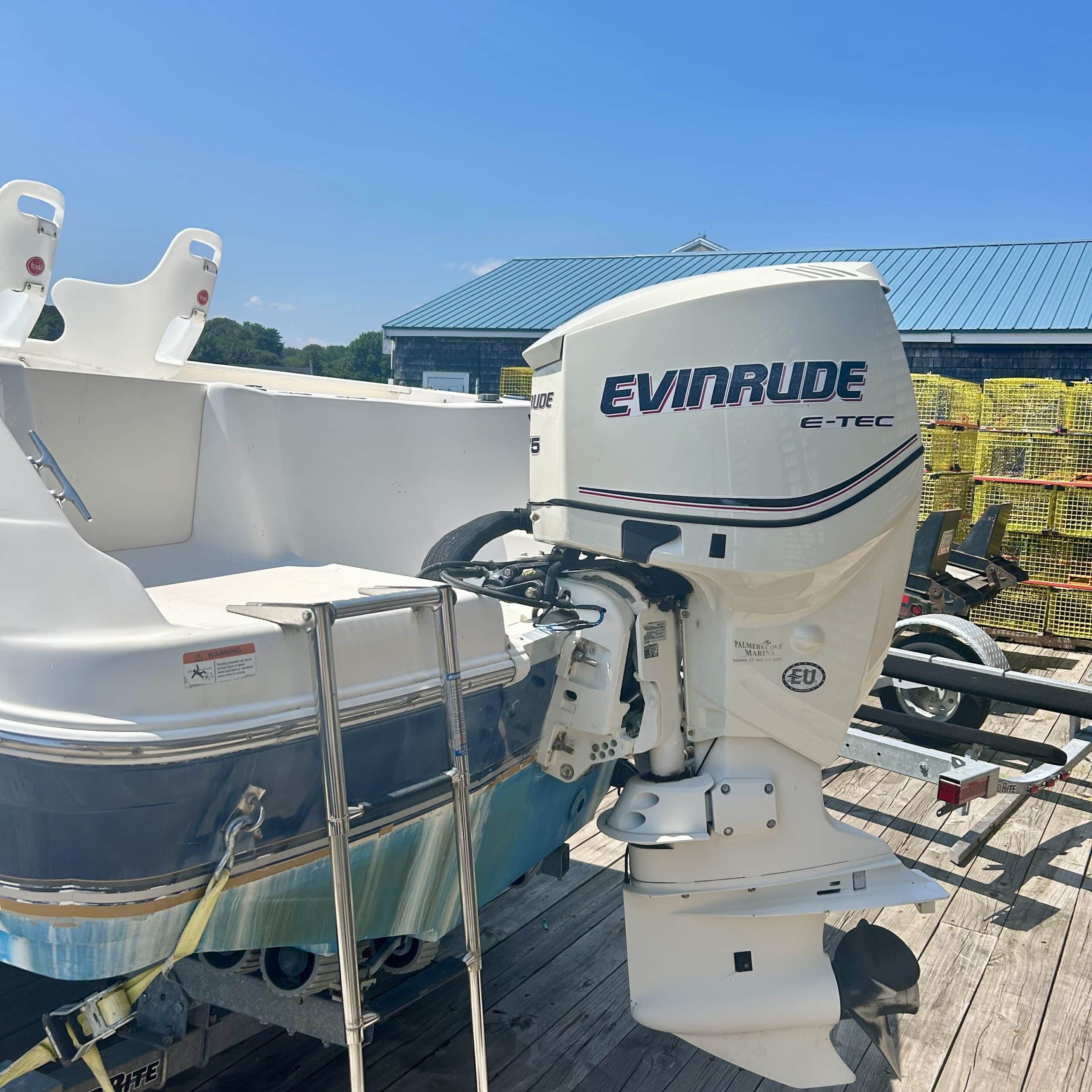 eveinrude outboard on boat on trailer